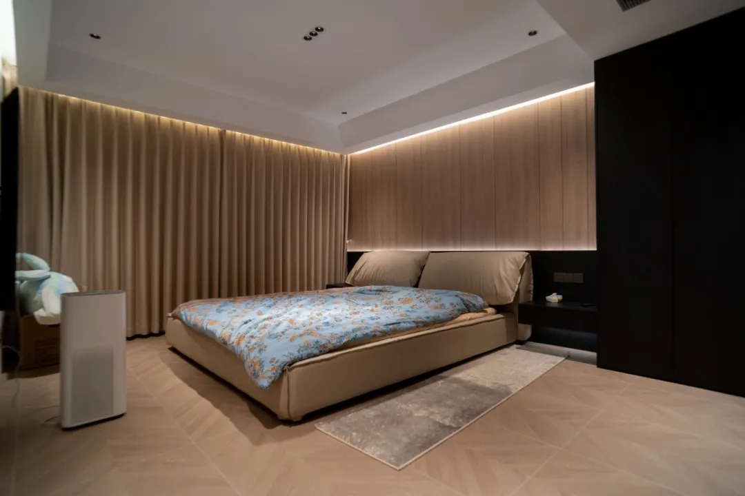 以紫墨起韻,納光影之形,盡素雅純凈。而原木色收納柜則用細節(jié)詮釋了現代設計之美,讓情緒在柔美安寧的氛圍中得以舒緩,萬般生活意趣皆藏于此。