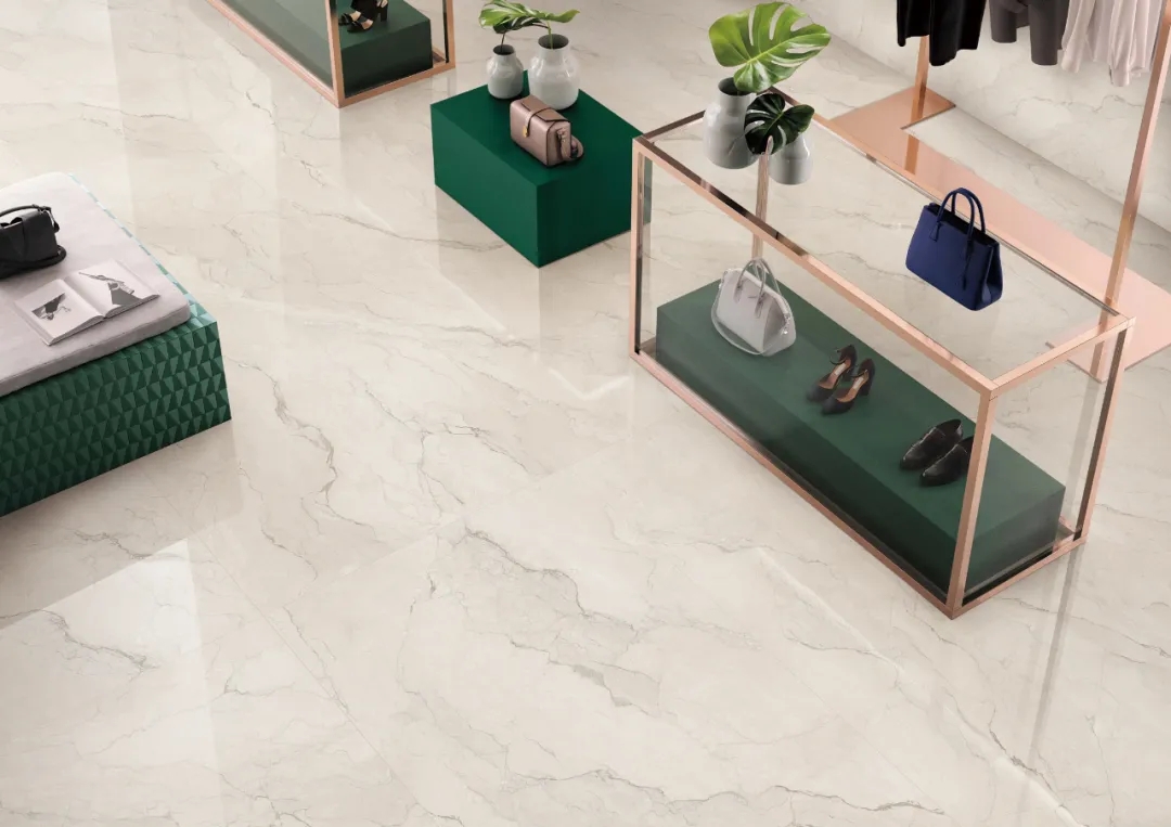 靈感源自意大利玉石般珍貴大理石,在皓白的雪花上勾勒寫意的紋理,以灰白金色調(diào)為主,紋理流動(dòng)交織,細(xì)膩且通透。將浪漫主義的情懷和藝術(shù)的韻味表現(xiàn)得酣暢淋漓,賦予了空間無(wú)盡的想象與深度。