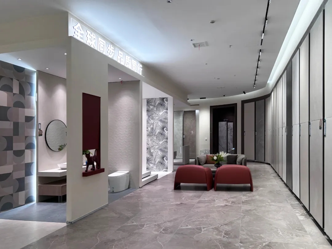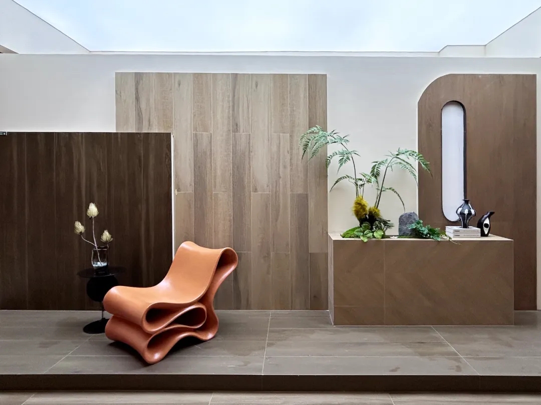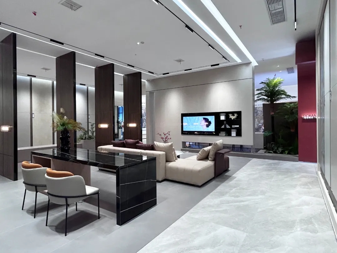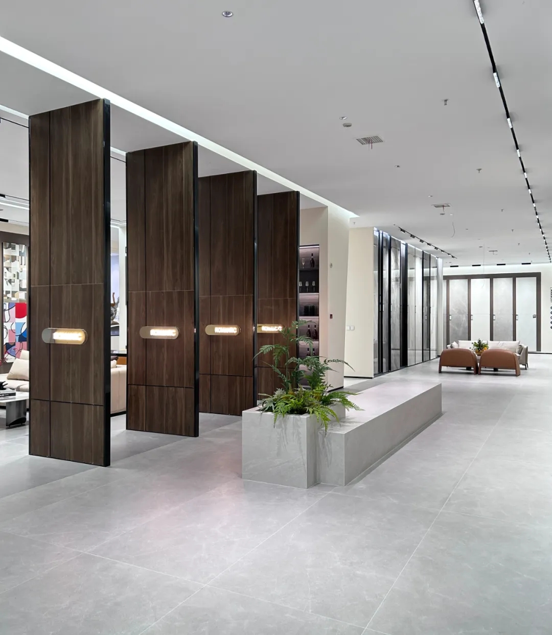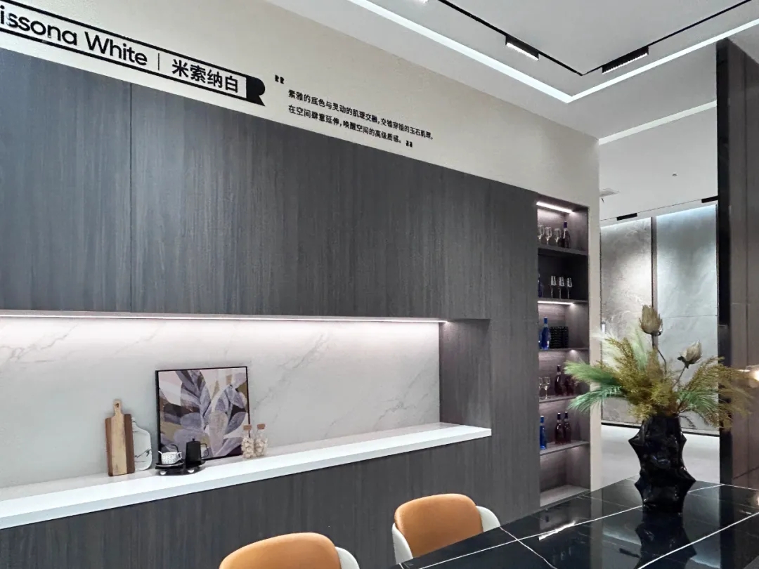 選材區(qū)排列整齊而豐富的產(chǎn)品,最大限度地體現(xiàn)產(chǎn)品真實細膩的質(zhì)感,堅實的品質(zhì)。從遠到近,更多的是帶著一種鑒賞的態(tài)度,把視覺集中在瓷磚產(chǎn)品自身的表現(xiàn)力上,以此更多關(guān)注產(chǎn)品本身的色彩、質(zhì)感、紋理等。