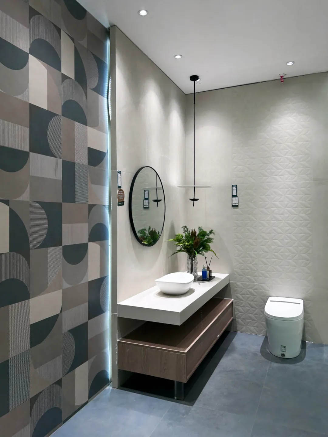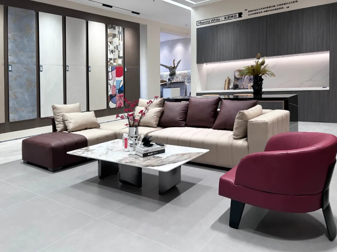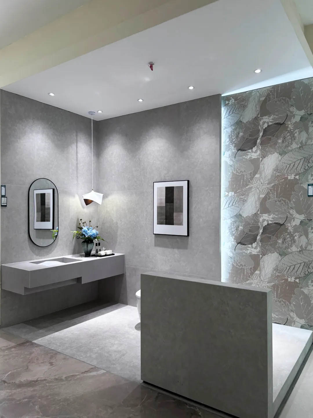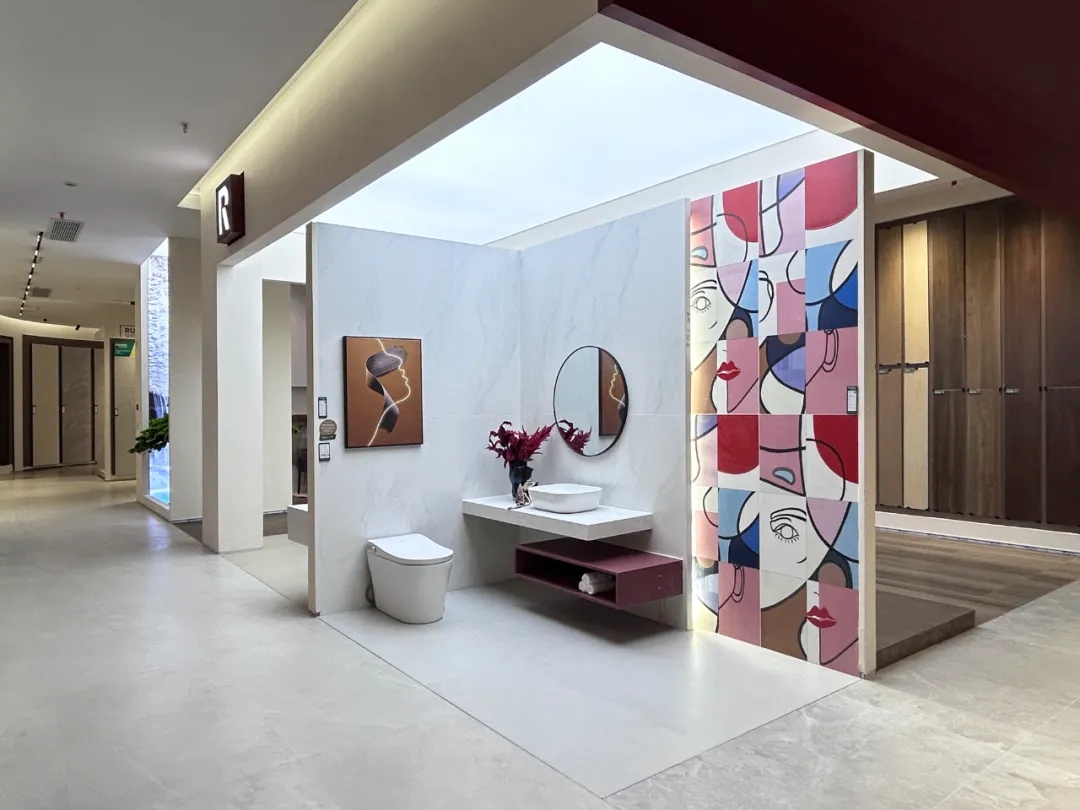 選材區(qū)排列整齊而豐富的產(chǎn)品,最大限度地體現(xiàn)產(chǎn)品真實細膩的質(zhì)感,堅實的品質(zhì)。從遠到近,更多的是帶著一種鑒賞的態(tài)度,把視覺集中在瓷磚產(chǎn)品自身的表現(xiàn)力上,以此更多關(guān)注產(chǎn)品本身的色彩、質(zhì)感、紋理等。