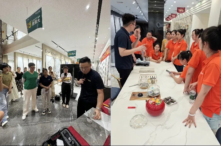 除了專業(yè)的干貨知識(shí)外,各位導(dǎo)師還會(huì)引導(dǎo)學(xué)員來到樣板間進(jìn)行演練,進(jìn)行情景模擬,并通過一對(duì)一的解答方式,切實(shí)地解決了終端所遇到的銷售問題,獲得現(xiàn)場(chǎng)學(xué)員的共鳴與認(rèn)可,進(jìn)一步提高了營銷隊(duì)伍服務(wù)質(zhì)量和業(yè)務(wù)水平的提升,以更加精神飽滿的狀態(tài)投入工作,助力品牌高速發(fā)展。