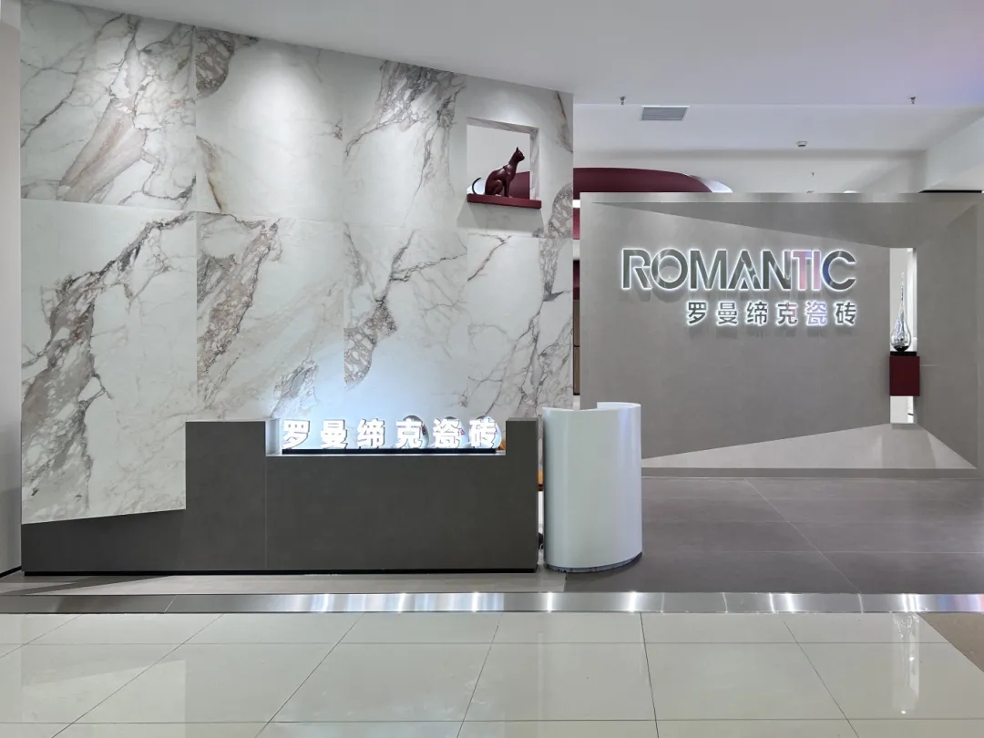 ROMANTIC CERAMICS YILIAN showroom, innovation and breakthrough in the integration of art and technology. Advanced color matching, antique texture space, through the pure space language, interprets the delicate relationship between the material and space of ROMANTIC products.