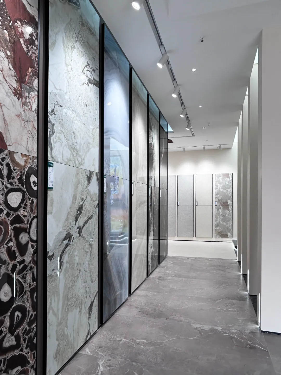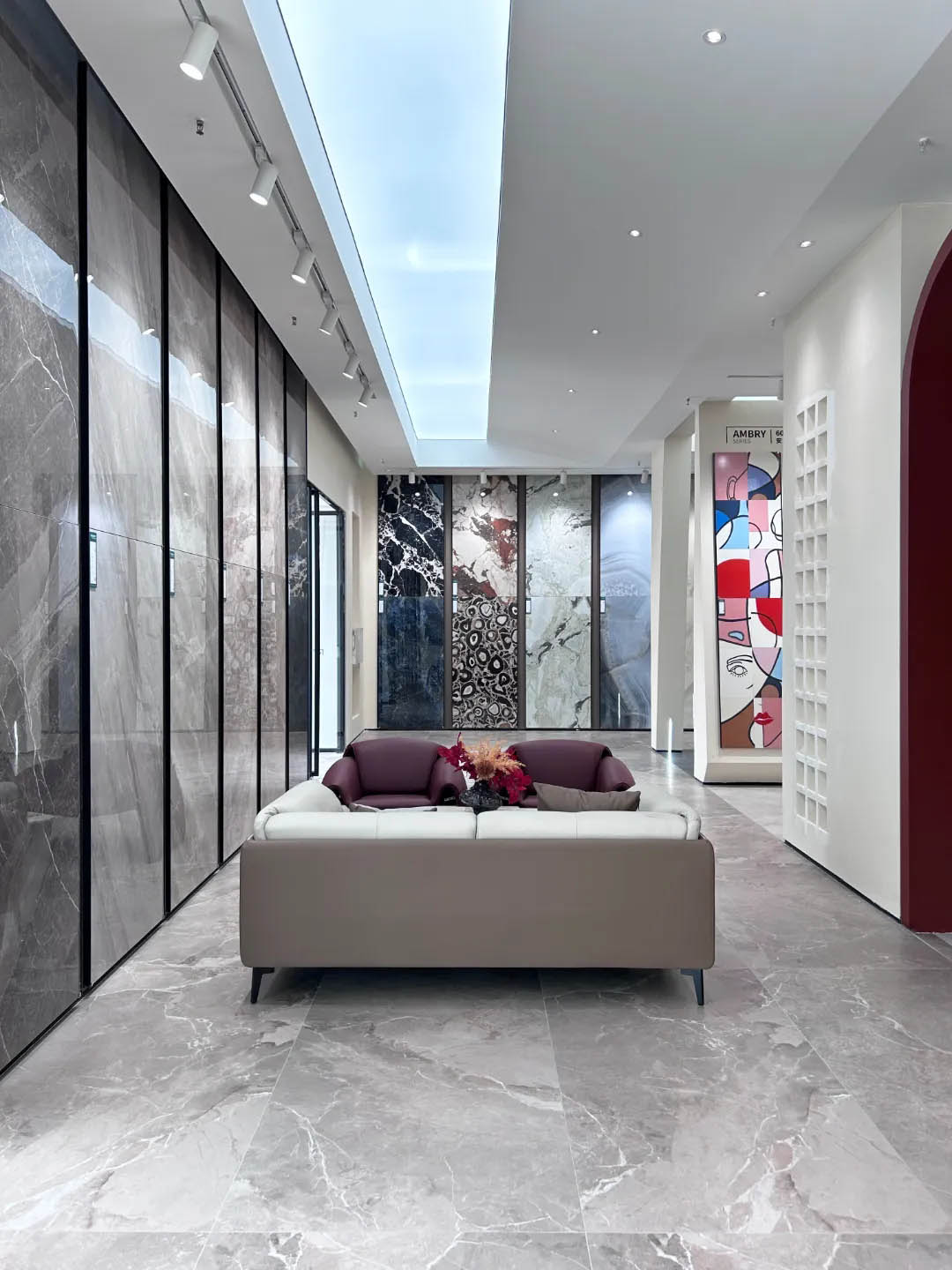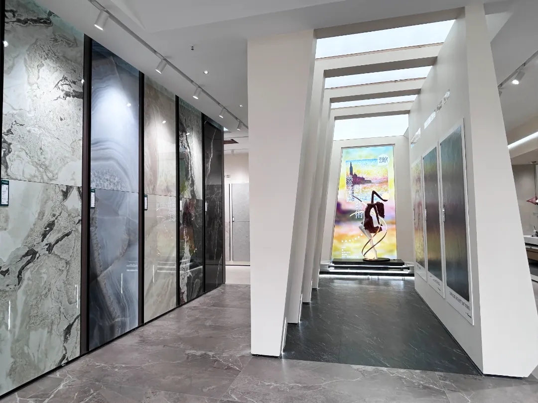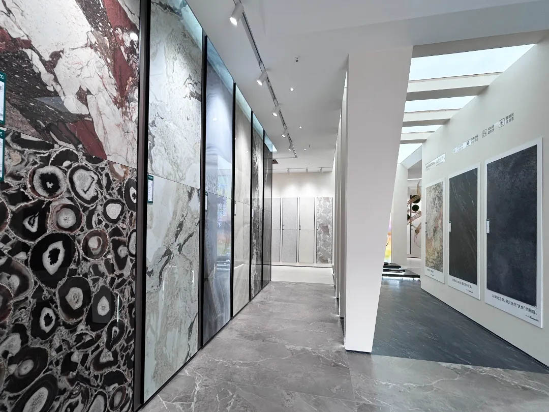視覺(jué)墻采用900x1800mm翡冷翠彩石,粗曠豪邁的紋理,述說(shuō)著大自然的磅礴之美,與之形成鮮明對(duì)比的是從切面空間到直線的選材區(qū)轉(zhuǎn)變,讓瀏覽動(dòng)線更加豐富。