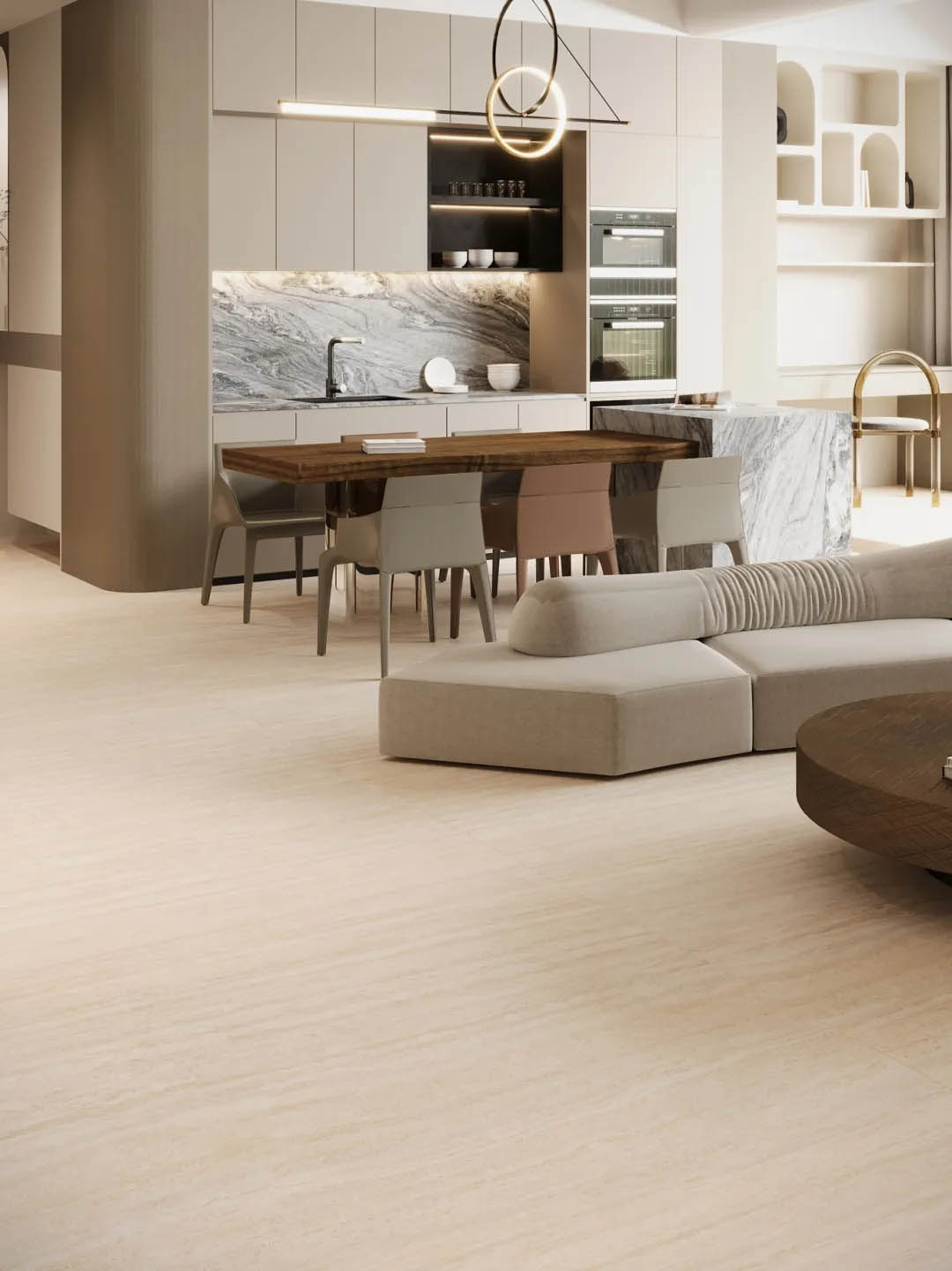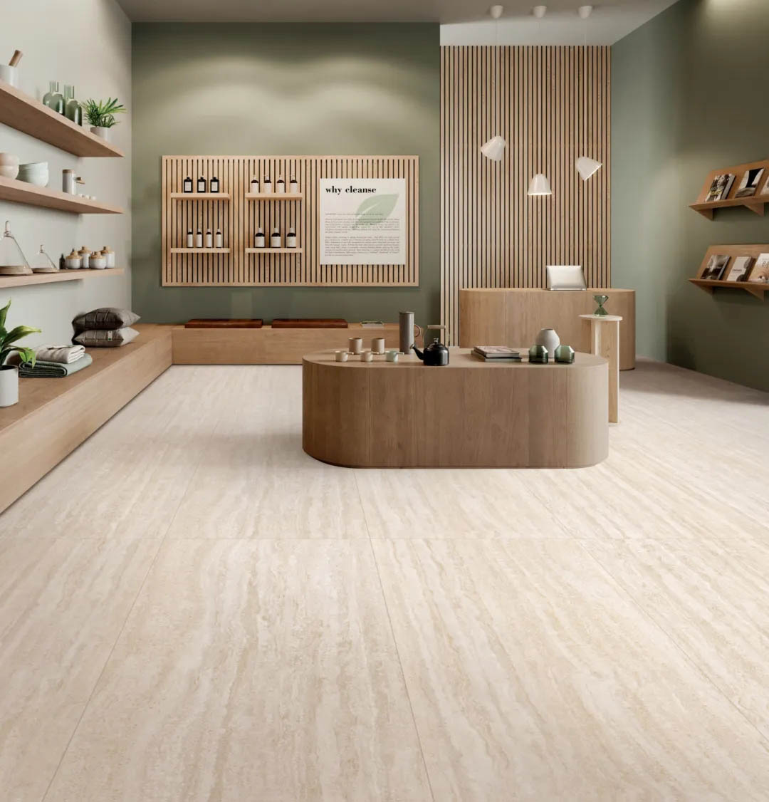 靈感源自意大利米蘭的天然洞石,清冷凜冽的米灰色,層疊錯(cuò)落的豎條紋理肌理,斑駁細(xì)膩的孔洞,流淌著【米蘭洞】歲月靜好的時(shí)光印痕,潤(rùn)澤而豐富的質(zhì)感,讓空間既時(shí)尚又富有歷史感。