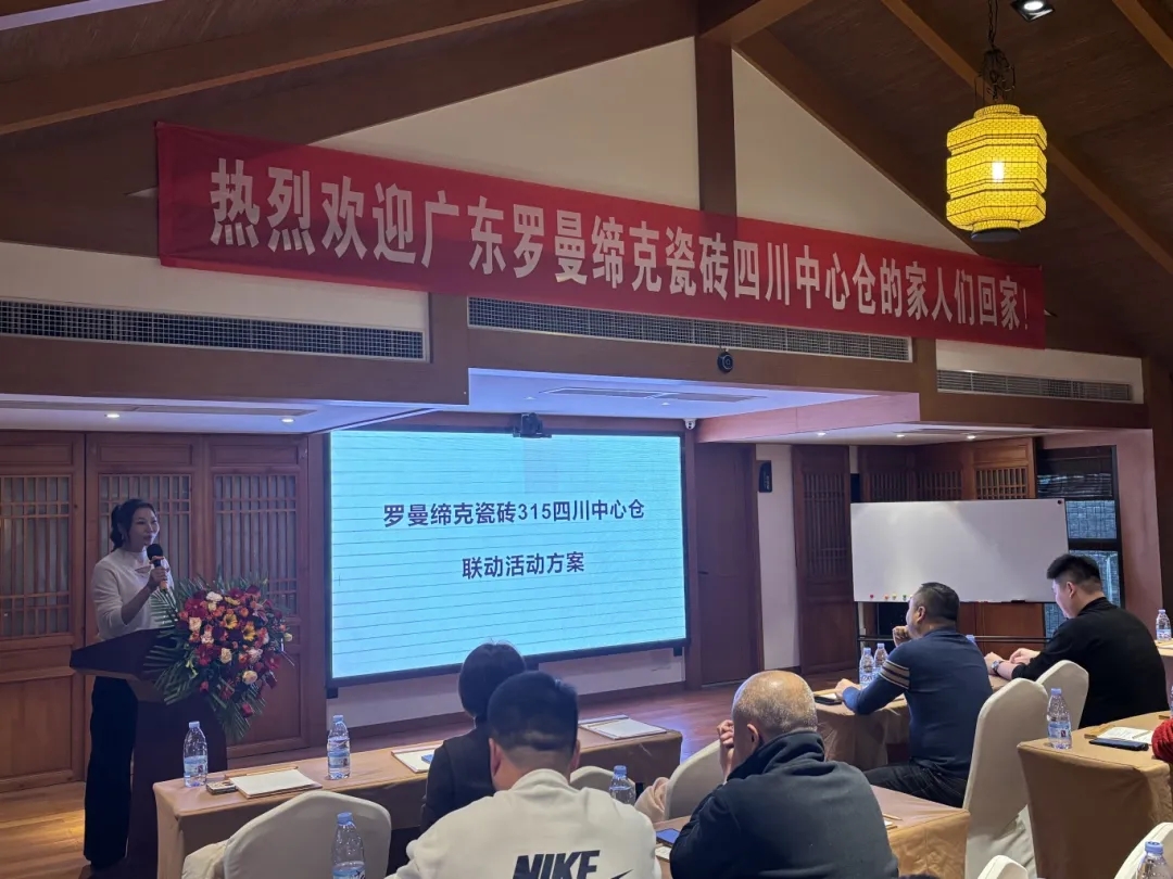 羅曼締克瓷磚四川中心倉(cāng)總經(jīng)理劉軍在致辭中表示,十分感謝羅曼企業(yè)總部給予四川中心倉(cāng)大力度的扶持政策,未來(lái)將深化踐行逐店制定成長(zhǎng)方案,探索發(fā)展銷售渠道,多提建設(shè)性意見(jiàn),助力四川中心倉(cāng)發(fā)展壯大,拓寬市場(chǎng),力爭(zhēng)成為羅曼企業(yè)在西南地區(qū)的有力后盾。