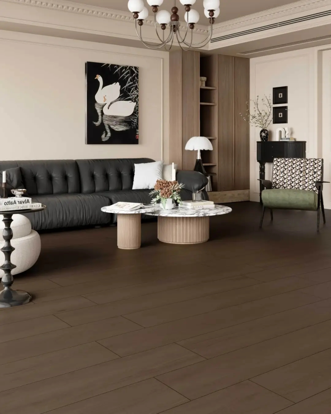 空間的層次在材質(zhì)中自然遞進(jìn),深色木紋磚,是意式的低音符,光線穿透木紋肌理,也塑造了極簡而不失韻律的視覺層次。