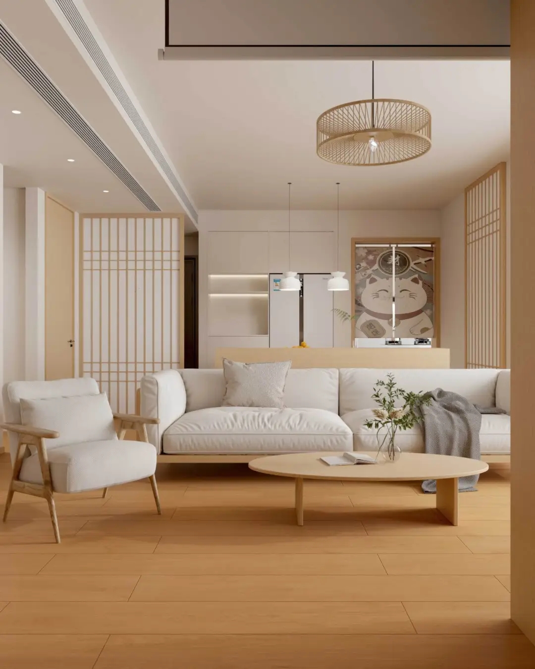 日式原木風(fēng),以簡約,純粹的美學(xué)理念為基礎(chǔ),強(qiáng)調(diào)用自然材料和色調(diào),放大材質(zhì)本身的敘事力。