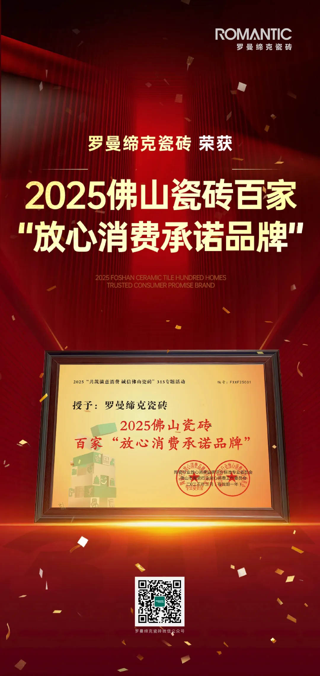 在此次大會中,羅曼締克瓷磚成功入選2025佛山瓷磚百家“放心消費(fèi)承諾品牌”榜單。此次榮譽(yù)的加冕,既是行業(yè)、社會各界對羅曼締克扎根佛山,做強(qiáng)民族品牌的充分肯定,也是對羅曼締克在消費(fèi)者權(quán)益保護(hù),產(chǎn)品質(zhì)量管控及服務(wù)承諾兌現(xiàn)等領(lǐng)域的高度認(rèn)可與表彰。